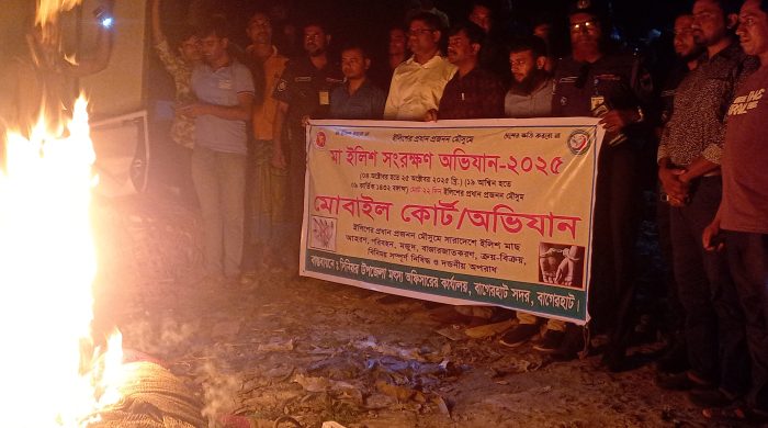 মা ইলিশ সংরক্ষণে বাগেরহাটে মোবাইল কোর্ট পরিচালনা,সাড়ে চার হাজার মিটার জাল ধ্বংস।উত্তাল