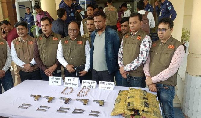 যশোর সদর উপজেলার নওয়াপাড়া ইউনিয়নের মধুগ্রাম এলাকায় ডিবি পুলিশের বিশেষ অভিযানে পাঁচটি বিদেশি পিস্তল, ১০টি ম্যাগাজিন, ৫০ রাউন্ড গুলি এবং ৪ কেজি ৫০০ গ্রাম গাঁজা উদ্ধার করা হয়েছে। এ ঘটনায় লিটন গাজী (৩৮) নামে এক বিস্তারিত পড়ুন
