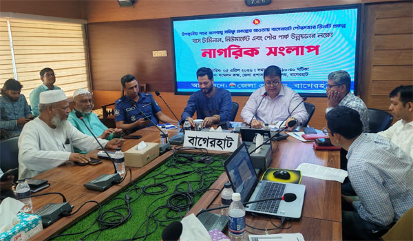 বাগেরহাটে আধুনিক বাস টার্মিনাল, নিউ মার্কেট ও পৌরপার্ক উন্নয়নের লক্ষে নাগরিক সংলাপ অনুষ্ঠিত হয়েছে। রোববার (০৫ এপ্রিল) সকালে জেলা প্রশাসকের সম্মেলন কক্ষে অনুষ্ঠিত সংলাপে প্রধান অতিথি ছিলেন বাগেরহাট-২ আসনের সংসদ আরো পড়ুন...