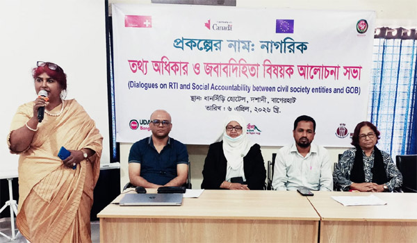 বাগেরহাটে তথ্য অধিকার ও জবাবদিহিতা বিষয়ক আলোচনা সভা অনুষ্ঠিত হয়েছে।সোমবার (০৬ এপ্রিল) সকালে শহরের ধানসিঁড়ি সম্মেলন কক্ষে মানবাধিকার কর্মী এ্যাড. মেহেরুন্নেছার সভাপতিত্বে অনুষ্ঠিত এই আলোচনা সভায় প্রধান অতিথি ছিলেন জেলা আরো পড়ুন...