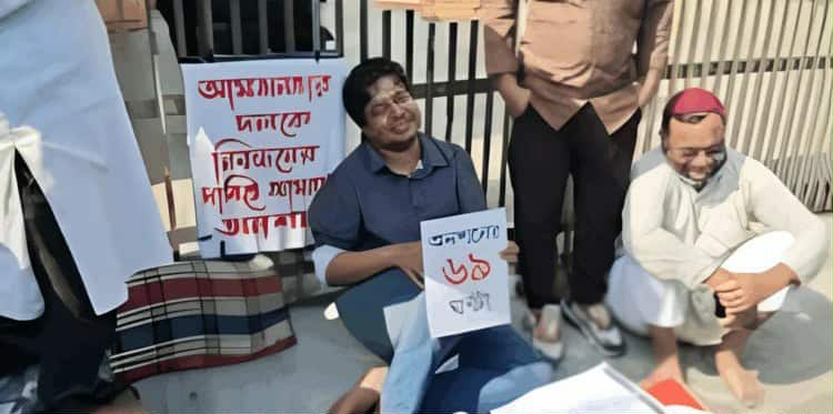 আগারগাঁওয়ের নির্বাচন ভবনের সামনে হাতে “৬৯ ঘণ্টার অনশন” লেখা কার্ড নিয়ে বসে আছেন তারেক। টানা তিন দিন একই পোশাকে রয়েছেন তিনি। অনশনস্থলে প্রতিদিনই আসছেন বিভিন্ন রাজনৈতিক দলের নেতা, কর্মী ও সাধারণ মানুষ। অনেকে খোঁজ নিচ্ছেন, কেউ আবার প্রয়োজনীয় কিছু লাগবে কি না জানতে চাইছেন।