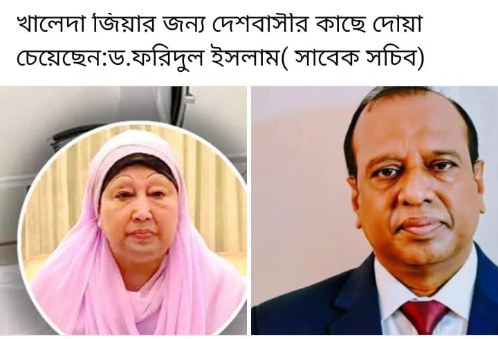 খালেদা জিয়ার জন্য দেশবাসীর কাছে দোয়া চেয়েছেন:ড.ফরিদুল ইসলাম( সাবেক সচিব)