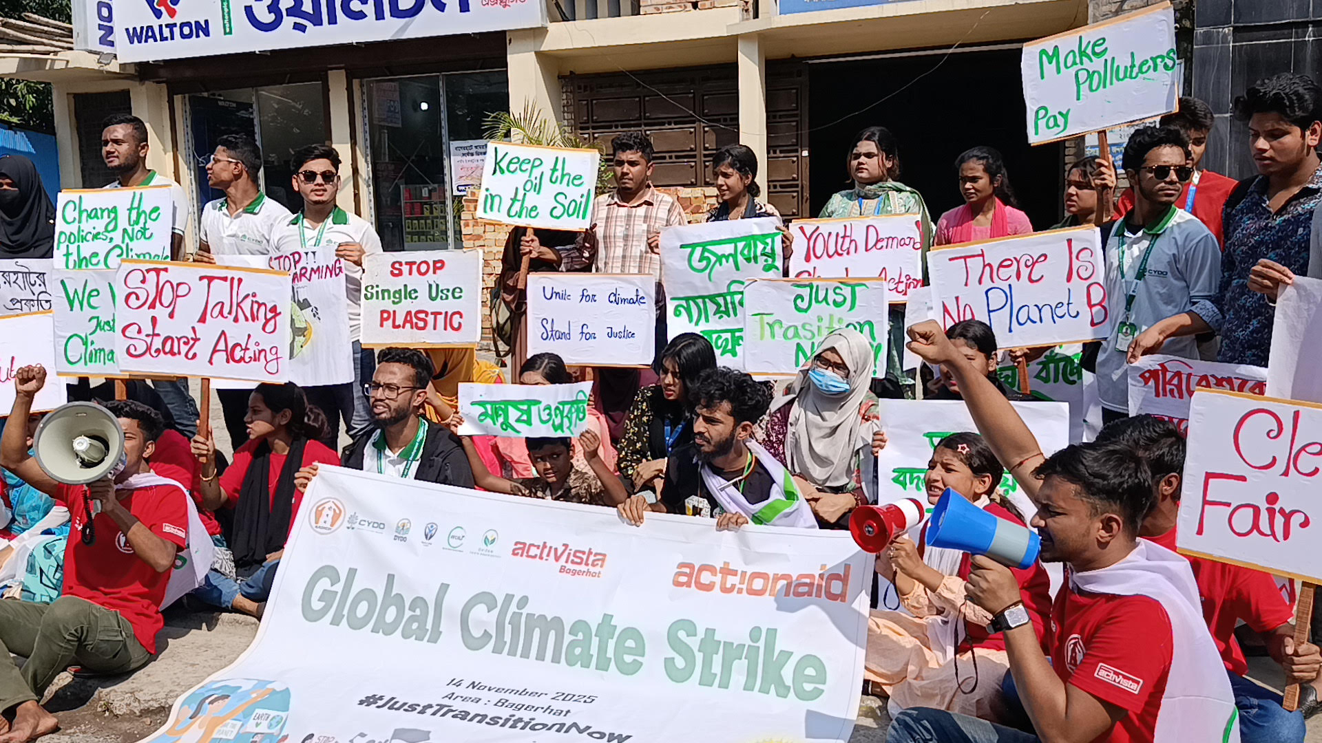 “ন্যায়সঙ্গত ও ন্যায্য রূপান্তরের জন্য তরুণদের তাৎক্ষণিক পদক্ষেপের আহ্বান” এই প্রতিপাদ্য নিয়ে বাগেরহাটে অনুষ্ঠিত হয়েছে গ্লোবাল ক্লাইমেট স্ট্রাইক ২০২৫। এক্টিভিস্টা বাগেরহাট, একশনএইড বাংলাদেশ ও বাঁধন মানব উন্নয়ন সংস্থার যৌথ আয়োজনে এবং গ্লোবাল প্লাটফর্ম বাংলাদেশের সহযোগিতায় শুক্রবার সকালে শহরের দশানী ট্রাফিক মোড়ে এ স্ট্রাইক অনুষ্ঠিত হয়। এতে শতাধিক তরুণ জলবায়ু কর্মী, স্থানীয় সামাজিক সংগঠনের প্রতিনিধি, শিক্ষার্থী ও সাংবাদিকরা অংশ নেন।