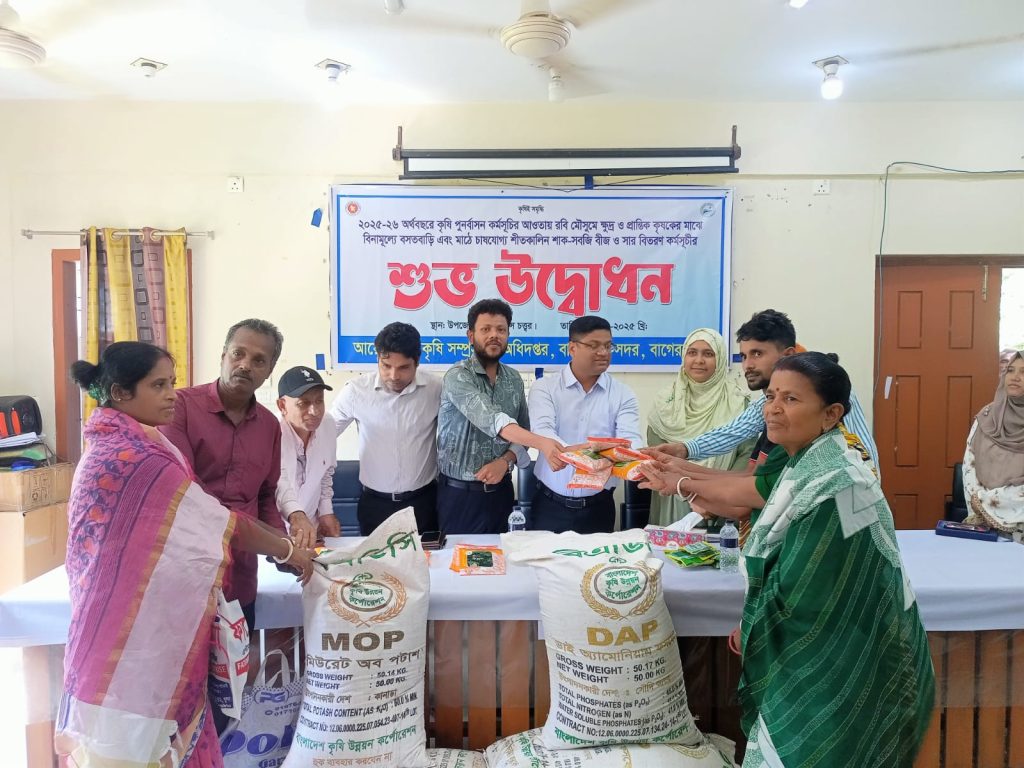 বিনামূল্যে সার ও বীজ বিতরণ করা হয়েছে।  ২০২৫-২৬ অর্থবছরে কৃষি পূর্ণবাসন  কর্মসূচির আওতায় রবি মৌসুমে ক্ষুদ্র ও প্রান্তিক কৃষকের মাঝে বিনামূল্যে