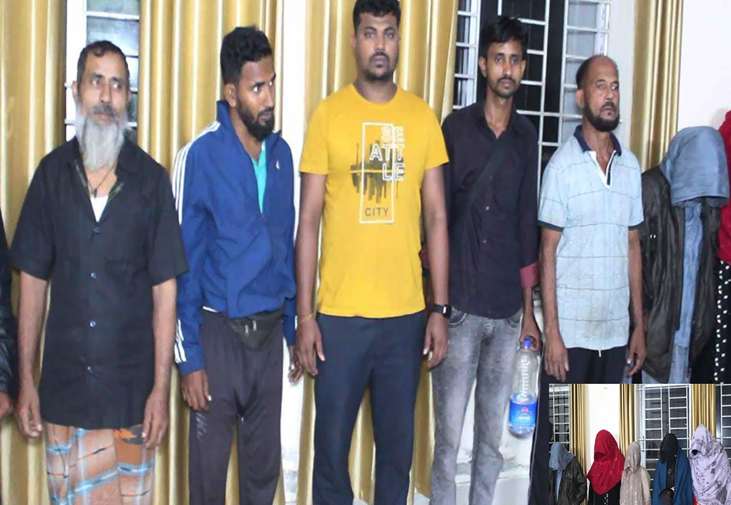 ফেরত আসা বাংলাদেশিরা হলেন, হোসেন আলী (২৫), হাফিজুর রহমান (৩১), বাবলুর রহমান (৪২), আব্দুল হান্নান (৬০), তাইজুল ইসলাম (৪৩), আমিনুর রহমান (৫৬), আব্দুল্লাহ আল মামুন (২৯)। আকলিমা খাতুন (৫২), শাহানারা খাতুন (১৫), রেশমা খাতুন (২৮), আজমিরা (০৫), তাহামিনা বেগম (৩০), জান্নাতুল বুশরা (০৪), নাসিমা খাতুন (৪১) ও শেফালী খাতুন (৩৬)। এদের বাড়ি সাতক্ষীরা ও খুলনা জেলার বিভিন্ন এলাকায়।