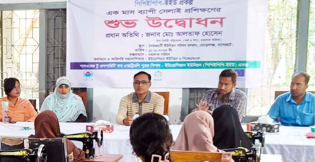 বাগেরহাটের মোড়েলগঞ্জ উপজেলার পল্লীতে বেসরকারী উন্নয়ন সংস্থা নবলোকের উদ্যোগে প্রশিক্ষন প্রাপ্ত হতদরিদ্র নারীদের মাঝে সেলাই মেশিন বিতারন করা হয়েছে। দাতা সংস্থা ইউরোপিয় ইউনিয়ন ও পিকেএসএফ এর অর্থায়নে নবলোক পরিষদ কর্তৃক বাস্তবায়িত পিপিইপিপি-ইউ প্রকল্পের আওতায় মঙ্গলবার বিকেলে জেলার মোড়েলগঞ্জ উপজেলার দৈবজ্ঞহাটী ইউনিয়ন পরিষদে এ বিতারন কার্য্যক্রম সম্পন্ন করা হয়। এর আগে প্রকল্পের হতদরিদ্র সদস্যদের নিয়ে ৩০ দিন ব্যাপী সেলাই মেশিন প্রশিক্ষন কার্যক্রমের আনুষ্ঠানিক উদ্বোধন করা হয়। প্রকল্পের উপ-পরিচালক মোঃ আলতাফ হোসেন প্রধান অতিথি হিসাবে উদ্বোধন ঘোষনা করেন।া এ সময় উপস্থিত ছিলেন প্রকল্পের সমন্বয়কারী মোস্তাফিজুর রহমান, এরিয়া ব্যবস্থাপক পার্থ রায় চৌধুরী, শাখা ব্যবস্থাপক মো: রিয়াজ উদ্দিনসহ প্রকল্পের অন্যান্য কর্মকর্তাবৃন্দ।#mn