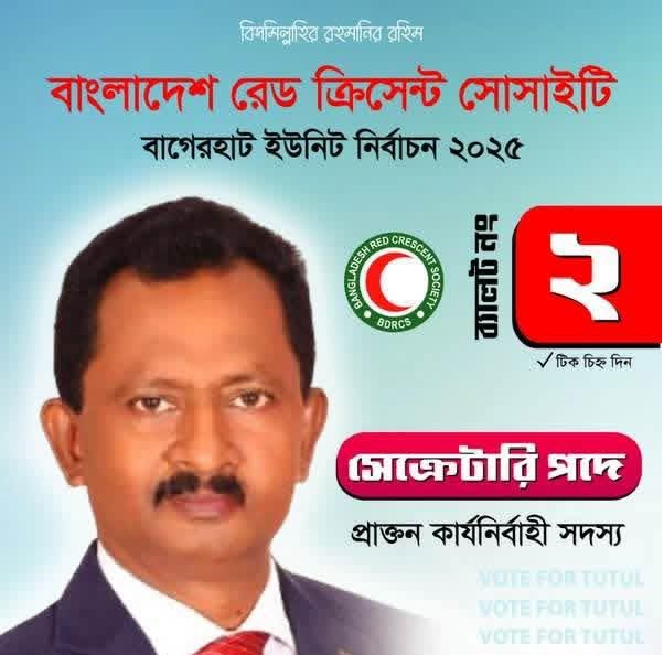 রেড ক্রিসেন্ট সোসাইটির আগামী নির্বাচনে সাধারণ সম্পাদক পদপ্রার্থী বাগেরহাট জেলা বিএনপি নেতা ও সাকে পৌর কাউন্সিল বিশিষ্ট সমাজ সেবক, দানবীর গরিব দুঃখী মেহনতী মানুষের বন্ধু