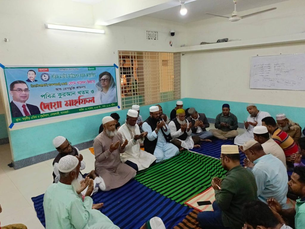 বিএনপির চেয়ারপার্সন ও সাবেক প্রধানমন্ত্রী বেগম খালেদা জিয়া-র রোগমুক্তি কামনায় দিনব্যাপী পবিত্র কোরআন খতম, মিলাদ মাহফিল ও দোয়া অনুষ্ঠিত হয়েছে।