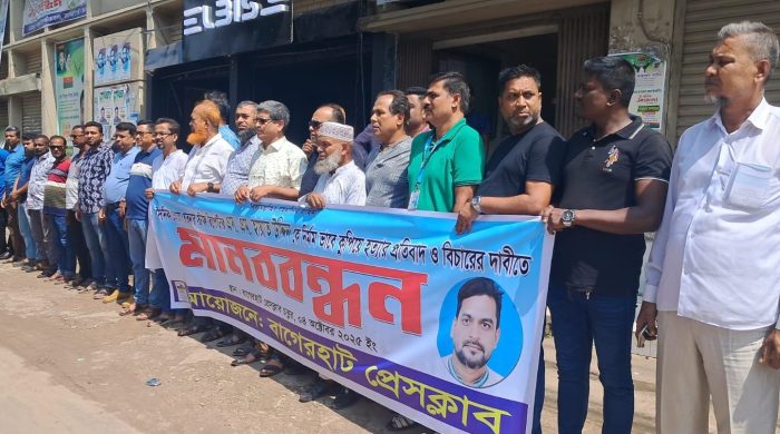 বাগেরহাটে সাংবাদিক হত্যার বিচার ও শাস্তির দাবিতে মানববন্ধন বাগেরহাটে কর্মরত দৈনিক ভোরের চেতনা পত্রিকার স্টাফ রিপোর্টার এস. এম. হায়াত উদ্দিনকে নির্মমভাবে কুপিয়ে হত্যার প্রতিবাদে ও দ্রুত বিচার দাবিতে মানববন্ধন অনুষ্ঠিত বিস্তারিত পড়ুন