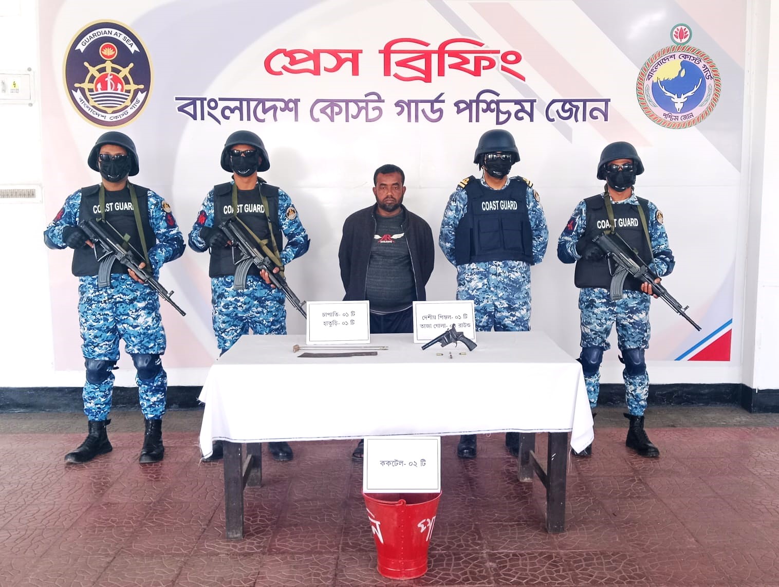 যৌথ অভিযানে পিস্তল,তাজা গোলা ও ককটেলসহ দুষ্কৃতকারী আটক।