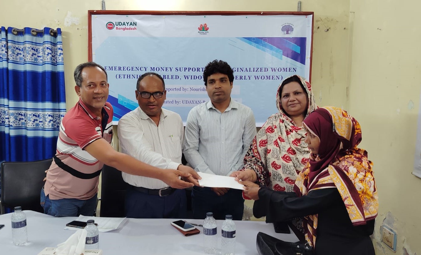 রবিবার (২৬ এপ্রিল ) সকালে উদয়ন বাংলাদেশের হলরুমে “প্রান্তিক নারীদের জন্য জরুরি আর্থিক সহায়তা” প্রকল্পের আওতায় এ আয়োজন করা হয়। অনুষ্ঠানটি নোরিস বাংলাদেশ ও মানুষের জন্য ফাউন্ডেশন (এমজেএফ) এর সহযোগিতায় উদয়ন-বাংলাদেশ এর আয়োজনে এ কার্যক্রমের শুভ উদ্বোধন করেন বাগেরহাট জেলা সমাজসেবা অধিদপ্তরের উপ-পরিচালক সন্তোষ কুমার নাথ, বিশেষ অতিথি হিসেবে উপস্থিত ছিলেন বাগেরহাট প্রেস ক্লাবের সহ:সভাপতি ও উপজেলা নাগরিক ফোমারের সদস্য এসএম রাজ, বাগেরহাট উপজেলা সমাজসেবা অফিসার সোহেল পারভেজ, অনুষ্ঠানের সভাপতিত্ব করেন উদয়ন বাংলাদেশের নির্বাহী পরিচালক সাংবাদিক ইসরাত জাহান । অনুষ্ঠানে বাগেরহাট পৌরসভা, রাখালগাছি, কাড়াপাড়া ও ষাটগম্বুজ ইউনিয়নের বিধবা নারী ১৪জন, প্রতিবন্ধী নারী ৫জন, স্বামী পরিত্যক্তা, ২জন দিলত নারী: ৪জন সহ সর্ব মোট ২৫জন উপকারভোগী কে আর্থিক সহায়তা প্রদান করা হয় । প্রতিজন মোবাইল ব্যাংকিংয়ের মাধ্যমে ২০০০/-(দুই হাজার টাকা) করে প্রদান করা হয়, বিতরণকৃত অর্থের পরিমাণ ৫০,০০০ টাকা। প্রধান অতিথির বক্তব্যে বলেন-আজকের এই আয়োজন সত্যিই প্রশংসনীয় । প্রান্তিক নারীরা আমাদের সমাজের সবচেয়ে ঝুঁকিপূর্ণ অংশ, যাদের সহায়তা করা শুধু মানবিক দায়িত্ব নয়, বরং টেকসই উন্নয়নের জন্য অত্যন্ত গুরুত্বপূর্ণ। উদয়ন-বাংলাদেশ, নোরিস বাংলাদেশ এবং মানুষের জন্য ফাউন্ডেশন (এমজেএফ)-এর এই উদ্যোগ প্রান্তিক নারীদের জীবনে ইতিবাচক পরিবর্তন আনতে সহায়ক হবে। সরকারের পাশাপাশি বেসরকারি সংস্থাগুলোর এমন উদ্যোগ সমাজে দারিদ্র্য বিমোচন ও নারীর ক্ষমতায়নে গুরুত্বপূর্ণ ভূমিকা রাখবে। আমি আশা করি, ভবিষ্যতে এ ধরনের কার্যক্রম আরও বিস্তৃত হবে । অনুষ্ঠানে বক্তরা বলেন- প্রান্তিক নারীদের জন্য এই সহায়তা কার্যক্রম বাস্তবায়নে যারা সহযোগিতা করেছেন, তাদের প্রতি কৃতজ্ঞতা প্রকাশ করছি। আমরা আশা করি, এই সহায়তা নারীদের জীবনে কিছুটা হলেও স্বস্তি ও আশার আলো নিয়ে আসবে । প্রান্তিক নারীদের পাশে দাঁড়ানো মানে একটি পরিবারকে শক্তিশালী করা। এই সহায়তা যেন আত্মনির্ভরতার পথে একটি ধাপ হয়ে দাঁড়ায়। এ ধরনের উদ্যোগ সমাজে ইতিবাচক দৃষ্টান্ত স্থাপন করবে ।