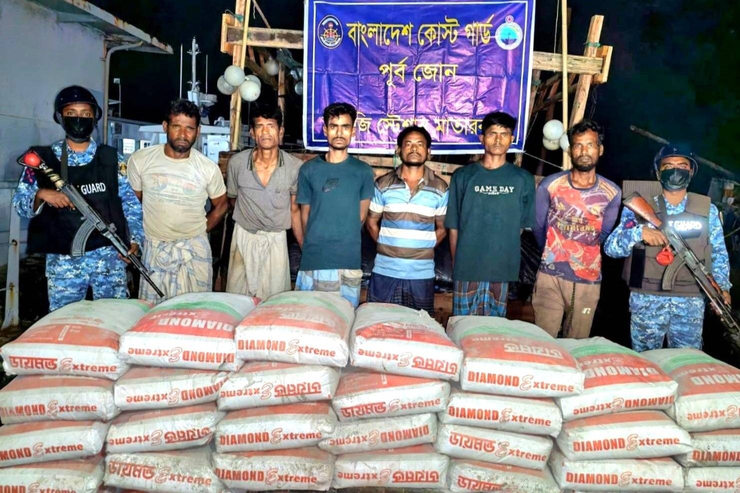 মায়ানমারে পাচারকালে বিপুল পরিমাণ সিমেন্টসহ ৬ পাচারকারীকে আটক করেছে কোস্ট গার্ড।