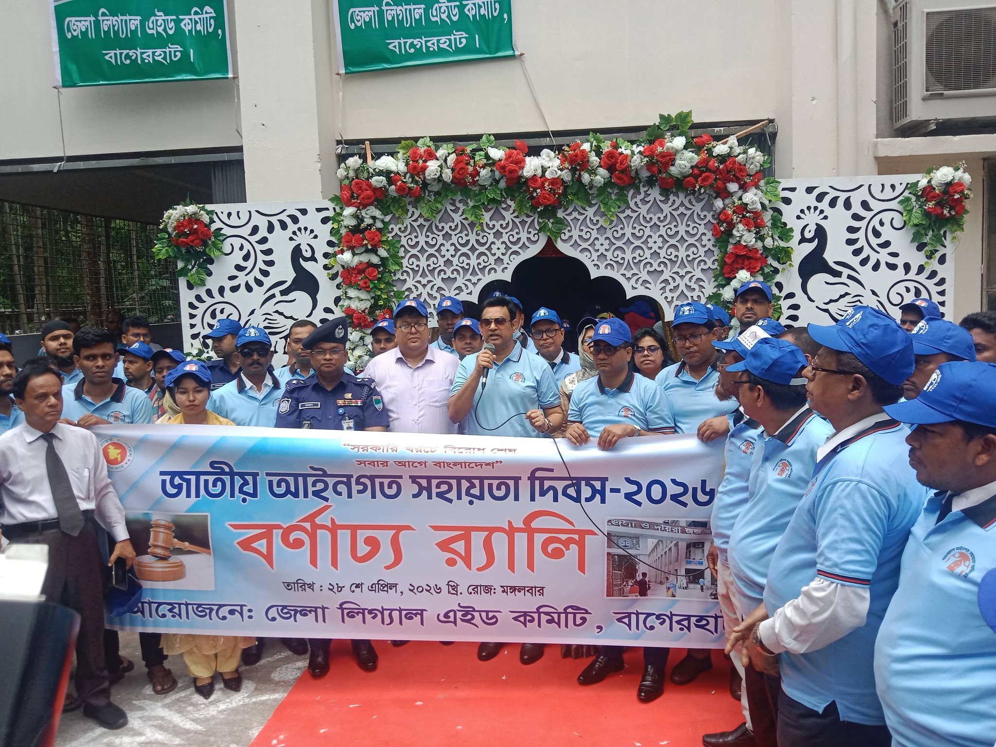 সরকারি খরচে বিরোধ শেষ, সবার আগে বাংলাদেশ’প্রতিপাদ্যকে সামনে রেখে বাগেরহাটে বর্ণাঢ্য আয়োজনের মধ্য দিয়ে পালিত হয়েছে জাতীয় আইনগত সহায়তা দিবস। বাগেরহাটে জাতীয় আইন সহায়তা দিবস-২০২৬ উযযাপন করা হয়েছে। মঙ্গলবার সকালে জেলা জজশীপ কার্য্যলয়ের সভা কক্ষে অনুষ্ঠিত আলোচনা সভায় সভাপতিত্ব করেন জেলা লিগ্যাল এইডের চেয়ার্যান জেলা ও দায়রা জজ মোঃ আশরাফুল ইসলাম । এখানে বক্তব্য রাখেন বাগেরহাট জেলা প্রশাসক গোলাম মোঃ বাতেন.বাগেরহাট জেলা পুলিশ সুপার হাসান চৌধুরী, চীফ জুডিসিয়াল ম্যাজিস্ট্রেট মোঃ শাহিনুর রহমান, অতিরিক্ত জেলা ও দায়রা জজ তরুন বাছাড়, ফাইজুর রহমান, ল্যান্ড সার্ভে ট্রাইবুন্যালের বিচারক অনামিকা চৌধুরী, জুডিসিয়াল ম্যাজিষ্ট্রেট আনিস মুন্সি প্রমুখ। সভাটি পরিচালনা করেন জেলা লিগ্যাল এইড অফিসার আছমা আরা বীথি। এর আগে এ দিবস উপলক্ষ্যে আদালত প্রাঙ্গনে একটি বর্নাঢ্য র্যালী বের করা হয়।