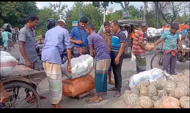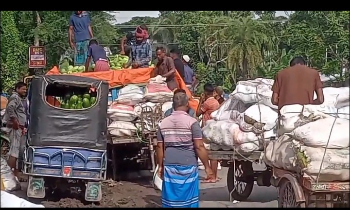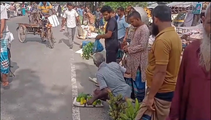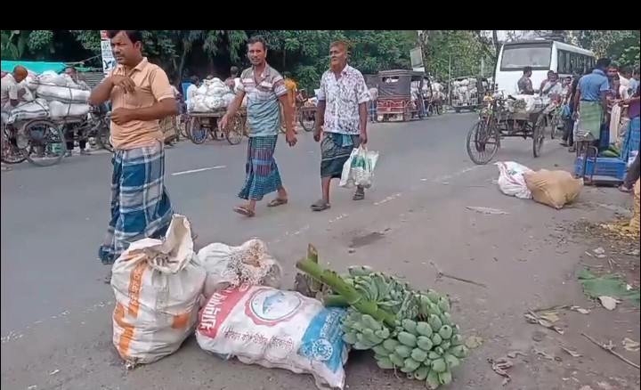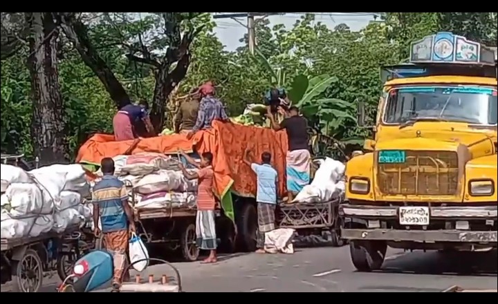 মহাসড়কের পাশে সবজির হাট,জীবনের ঝুঁকি নিয়ে চলে বেচাকেনা,অতিরিক্ত খাজনা আদায়ের অভিযোগ।