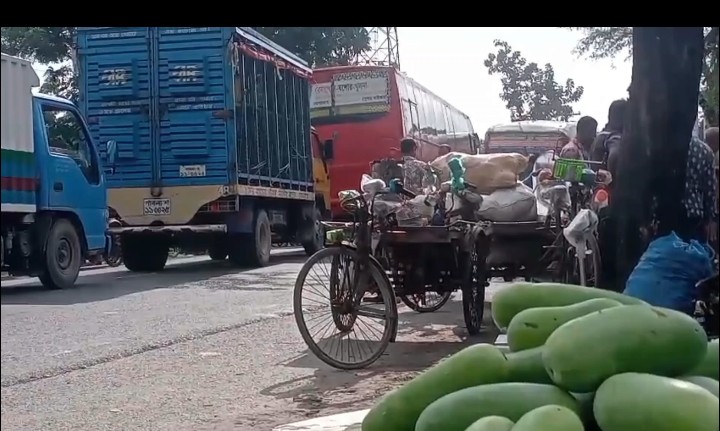 উপজেলার বিভিন্ন স্থানে উৎপাদিত সবজি ভ্যান, নসিমন ও অটোরিকশা যোগে বিক্রির করার জন্য এ হাটে নিয়ে আসেন কৃষকরা। এ সময় তারা মহাসড়কের দুপাশে সবজি রেখে বেচাকেনা করেন। দোকান গুলোর দুপাশ দিয়েই চলাচল করছে বাস-ট্রাকসহ বিভিন্ন যানবাহন। কেউ কেউ মহাসড়কের ওপর দাঁড়িয়ে বস্তায় সবজি ভরছেন। ক্রেতারাও ঝুঁকি নিয়ে মহাসড়কের ওপর দাঁড়িয়ে সবজি কিনছেন। অন্যদিকে সবজি পরিবহনের জন্য থামিয়ে রাখা যানবাহনের জন্য দেখা দিয়েছে যানজট। কৃষক ও ব্যবসায়ীরা বলছেন সবজি ব্যবসায়ীদের জন্য নির্ধারিত কোনো স্থান না থাকায় তারা বাধ্য হয়ে ঝুঁকি নিয়ে সড়কের পাশে বসে সবজি বিক্রি করছেন।