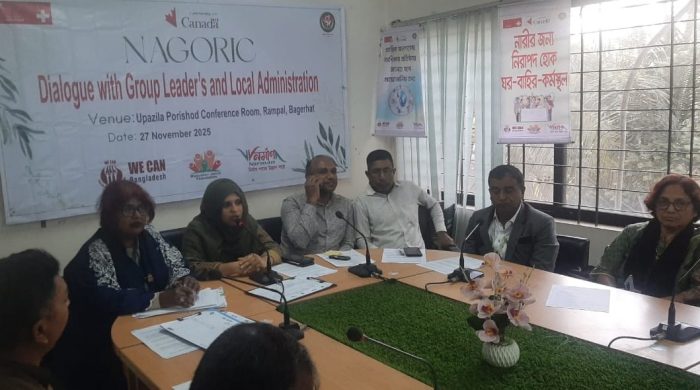 বাগেরহাটের রামপালে উপজেলা প্রশাসন ও নারিক ফোরামের নেতাদের সাথে নির্মাণ সমাজ উন্নয়ন সংস্থার সংলাপ অনুষ্ঠিত হয়েছে। বৃহস্পতিবার (২৭ নভেম্বর) সকালে উপজেলা নির্বাহী কর্মকর্তার সম্মেলন কক্ষে “সামাজিক নিরাপত্তা কর্মসূচিতে প্রান্তিক জনগোষ্ঠীর