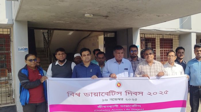 বাগেরহাটে বিশ্ব ডায়বেটিস দিবস-২০২৫ উপলক্ষে জেলা স্বাস্থ্য বিভাগ আয়োজনে শোভাযাত্রা অনুষ্ঠিত হয়েছে। রোববার (১৬ নভেম্বর) বাগেরহাট সিভিল সার্জনের কার্যালয়ের সামনে শোভাযাত্রাটি বের হয়ে বিভিন্ন সড়ক প্রদক্ষিন করে পুনরায় একই স্থানে